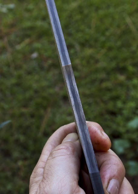 This all tool steel Piranha (no scales) is blackened to darken the steel and help prevent corrosion. While not a Battleship Blade like the other two, the Barebones Blackout deftly demonstrates a method used on battleships to protect the guns from corrosion at sea - Parkerization.