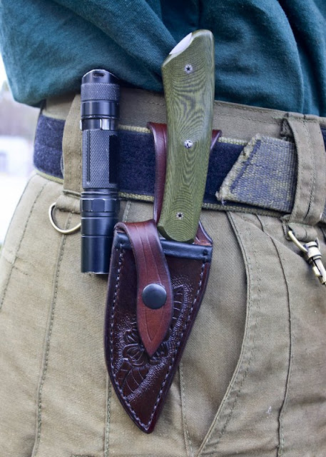 Scott made his personal Elite in green Micarta and did a special carving on the sheath.